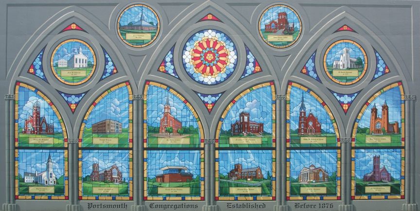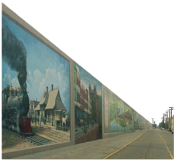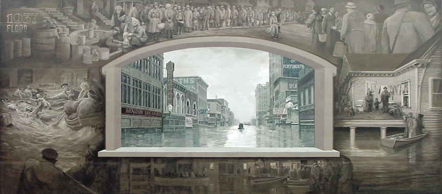 The planning stages of the Floodwall Mural Project began in 1992 with the formation of the Portsmouth Murals, Inc. The purpose of the project is to depict the history of the Portsmouth area, creating one of the world's single largest mural projects. The section of the floodwall included in the project is 20 feet high and extends for 2,200 feet along Front Street in downtown Portsmouth.